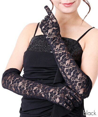 ■ポイントフラワーレースがエレガンス!ストレッチ素材のロンググローブです。