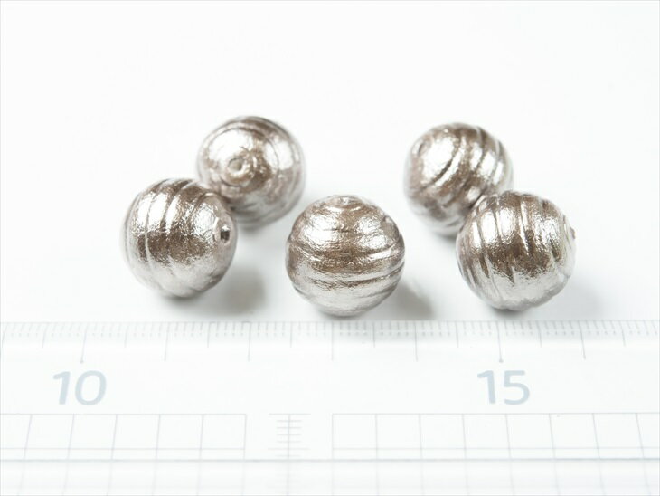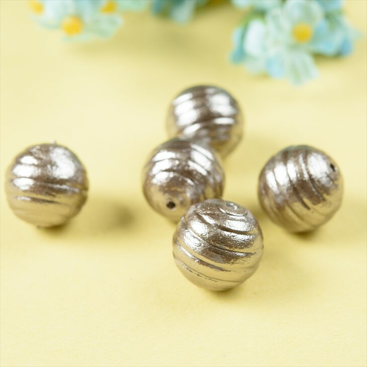 通し穴(両穴)タイプなので、他パーツと組み合わせたりコットンパールのハンドメイドアクセサリーを楽しもう!【内容詳細】コットンパール 丸玉 筋入り 5個【サイズ】約1.5cm 約15mm×14.5mm 通し穴:約1.5mm 【カラー】ブロンズ ※穴の目詰まりがある場合は、針や目打ちなどで穴を広げてからご使用ください。