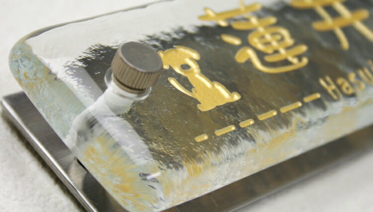 尚、手作りガラスは型に流し込み手作りで製作される為、厚さに多少の差異がございます) ■ガラス色 クリア ■文字色 23 ゴールド ■文字フォント 漢字 20 英字 20 ■納期 レイアウト承認後、約2週間 ■その他 ※左画像は実際装着したサンプルのイメージです。